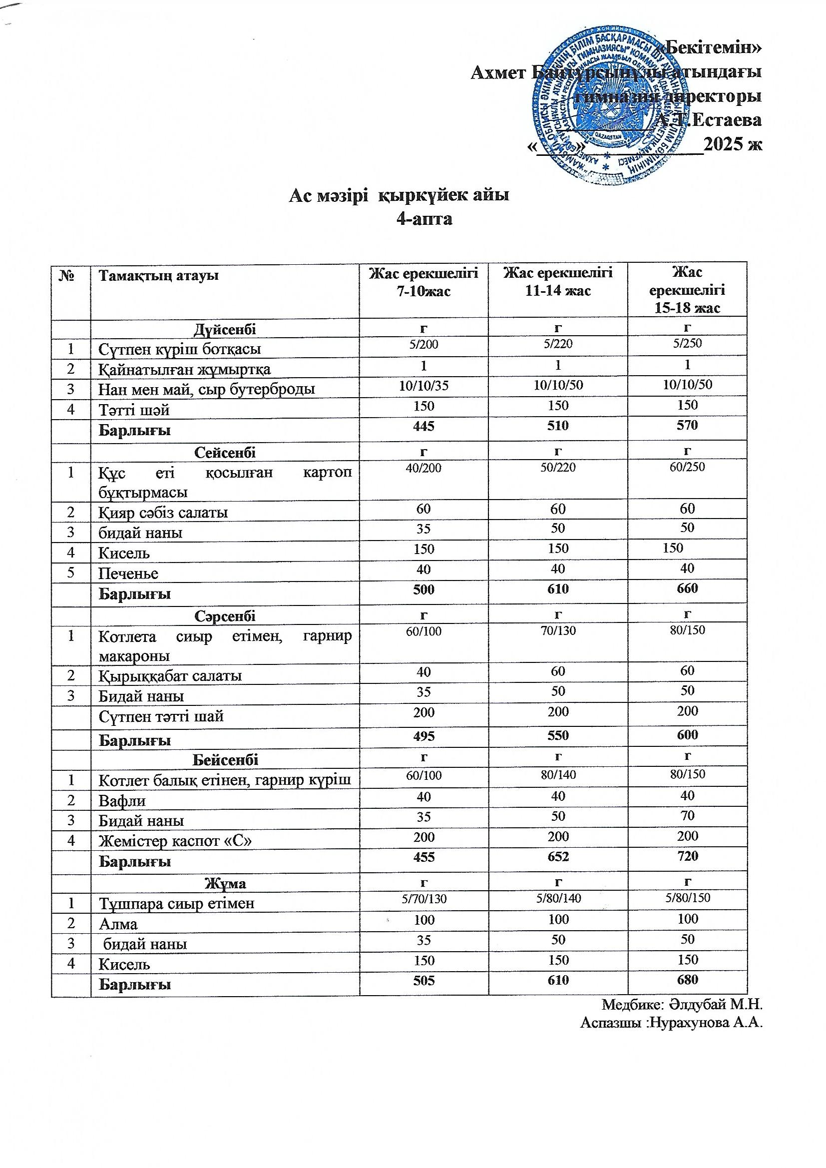 1-4 сынып оқушыларының тізімін бекіту, тегін ыстық тамақпен қамтамасыз ету туралы